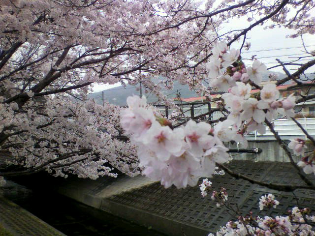 近くの竜田川の満開桜