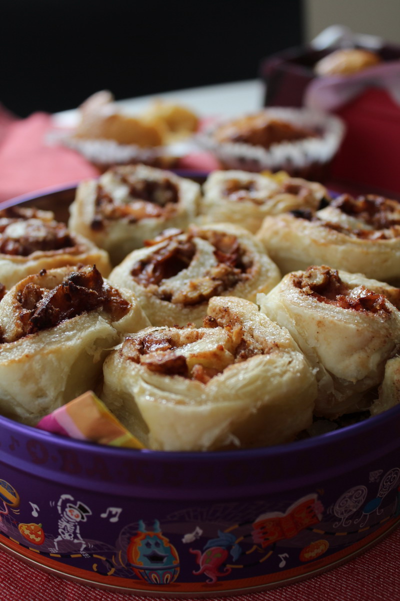 煮た紅玉でまたロールパイ。今度は広がらないようにぎゅっと固めて隙間も詰め物して。
