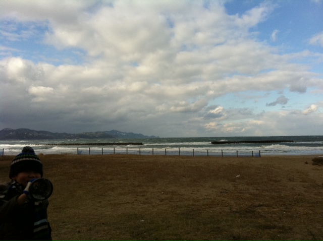 ものすごい浜風。時々ひょう。