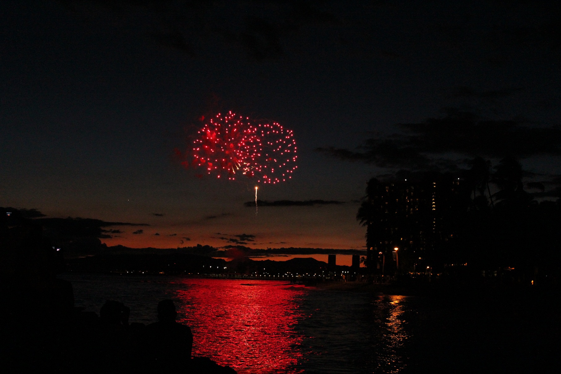 金曜日にはヒルトン敷地内から花火が5分ほど。
