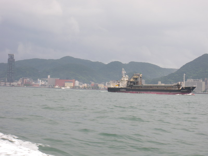せまーい海峡を通る船、何処行きの船か、みんなよくご存知です