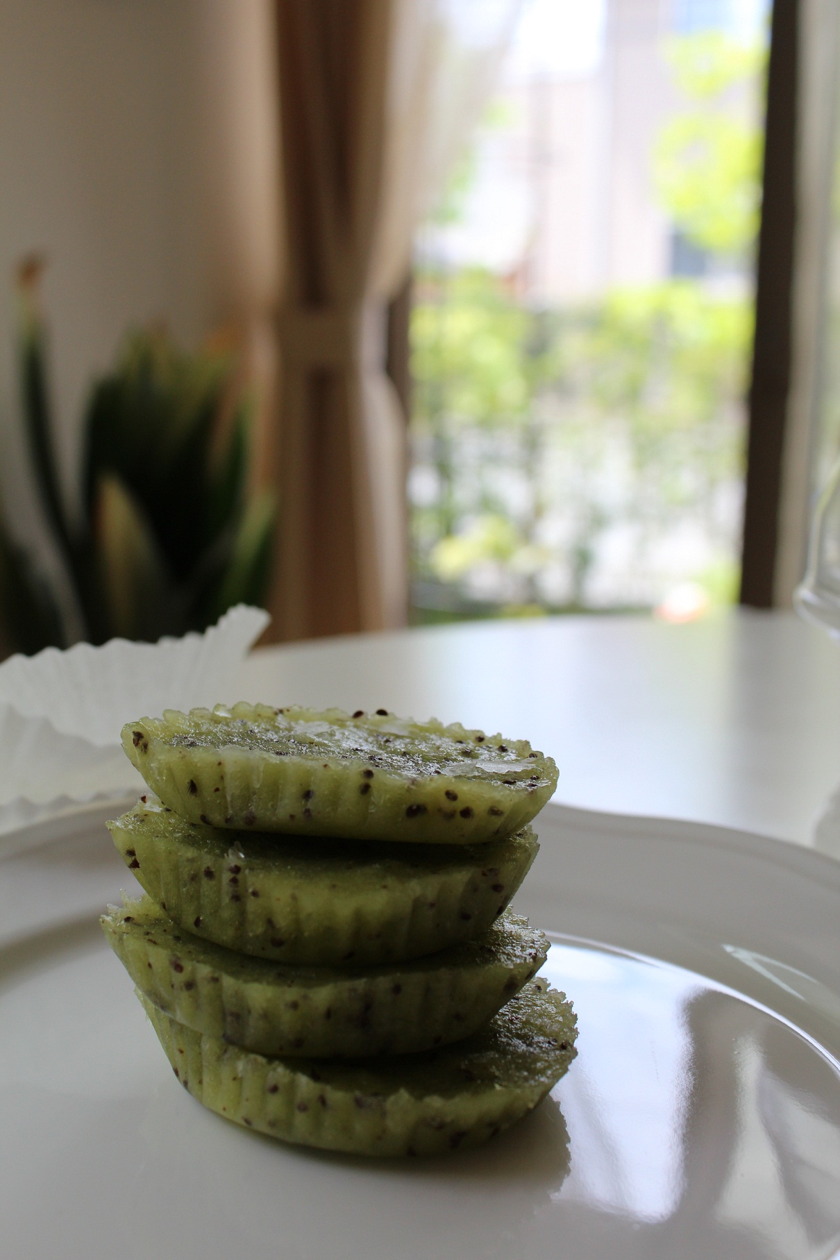 四つ葉の冷凍チーズケーキ。と冷凍庫にあった庭のブルーベリー。